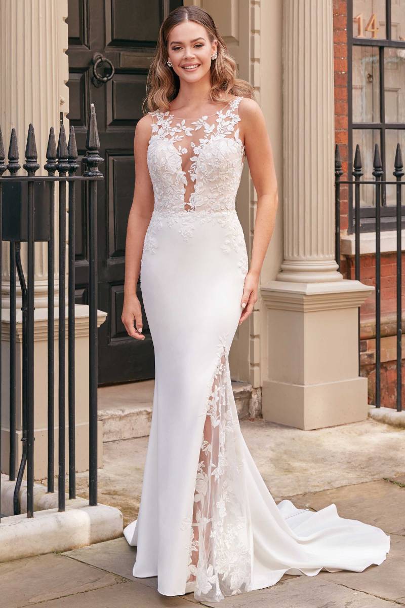 La collection Adore by Justin Alexander se distingue par ses créations contemporaines, toujours à la pointe des tendances. Le modèle Leandra, avec sa fente latérale et sa dentelle délicate, incarne parfaitement cette vision moderne de la mariée. Les tissus de qualité et les finitions soignées garantissent un confort exceptionnel tout au long de la journée.