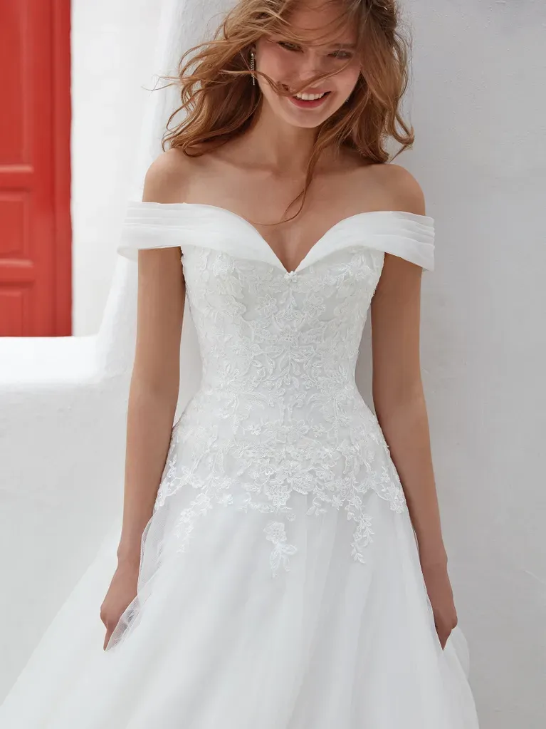 Nous proposons des robes de mariée grande taille du 44 au 54, adaptées aux morphologies pulpeuses.