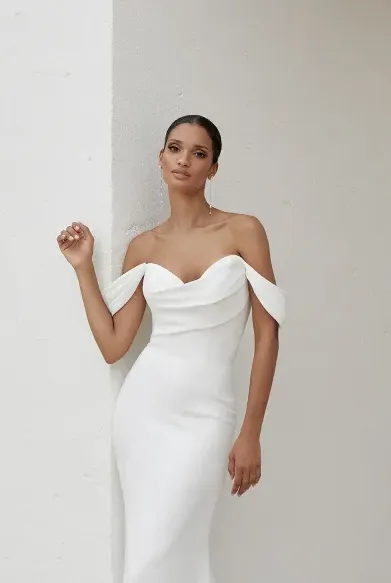 La robe de mariée sirène bustier crêpe Annalina représente l'essence même de l'élégance moderne. Ce modèle phare de la collection Adore by Justin Alexander 2025 séduit par son encolure en cœur plissée qui apporte une touche de romantisme tout en offrant un décolleté flatteur. Confectionnée dans un tissu jersey et crêpe d'exception, cette robe de mariée sirène se distingue par sa silhouette parfaitement moulante qui sublime chaque courbe féminine.