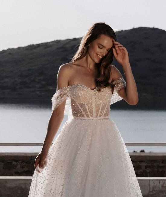 La robe de mariée à bustier dentelle transparente se décline en plusieurs coupes pour s'adapter à toutes les silhouettes.