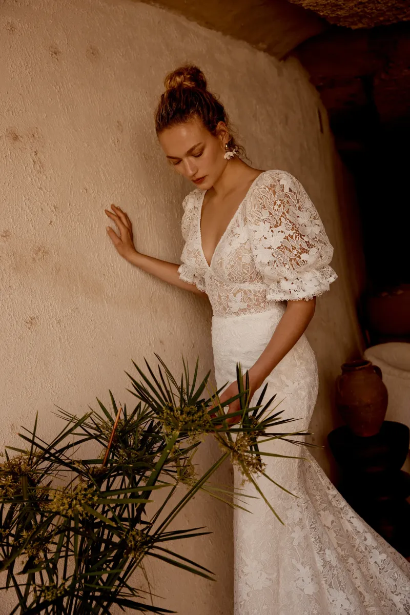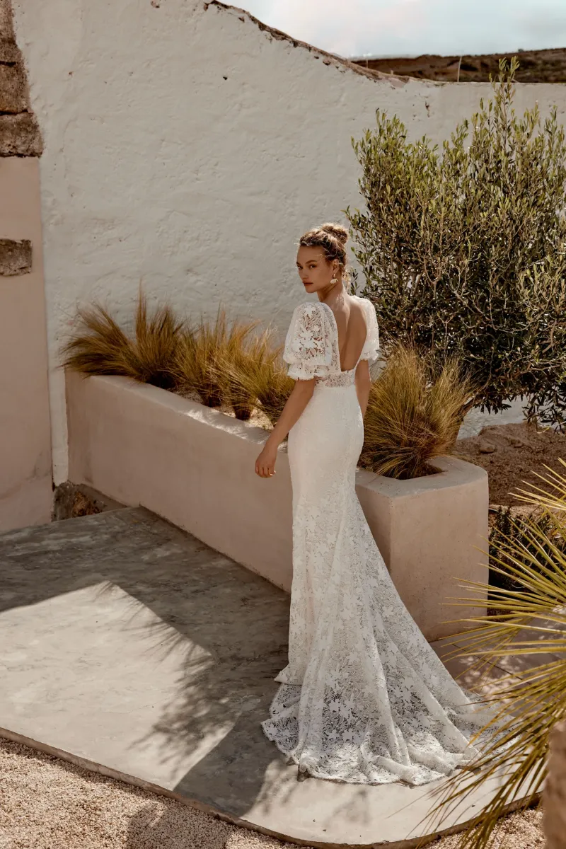 Cette robe de mariée est idéale pour un mariage bohème pour un look harmonieux, pensez à des accessoires minimalistes qui laissent la robe briller de mille feux. Réservez vite votre essayage chez Verona Sposa pour découvrir cette merveille.