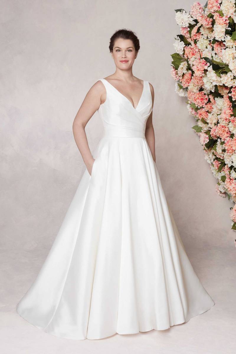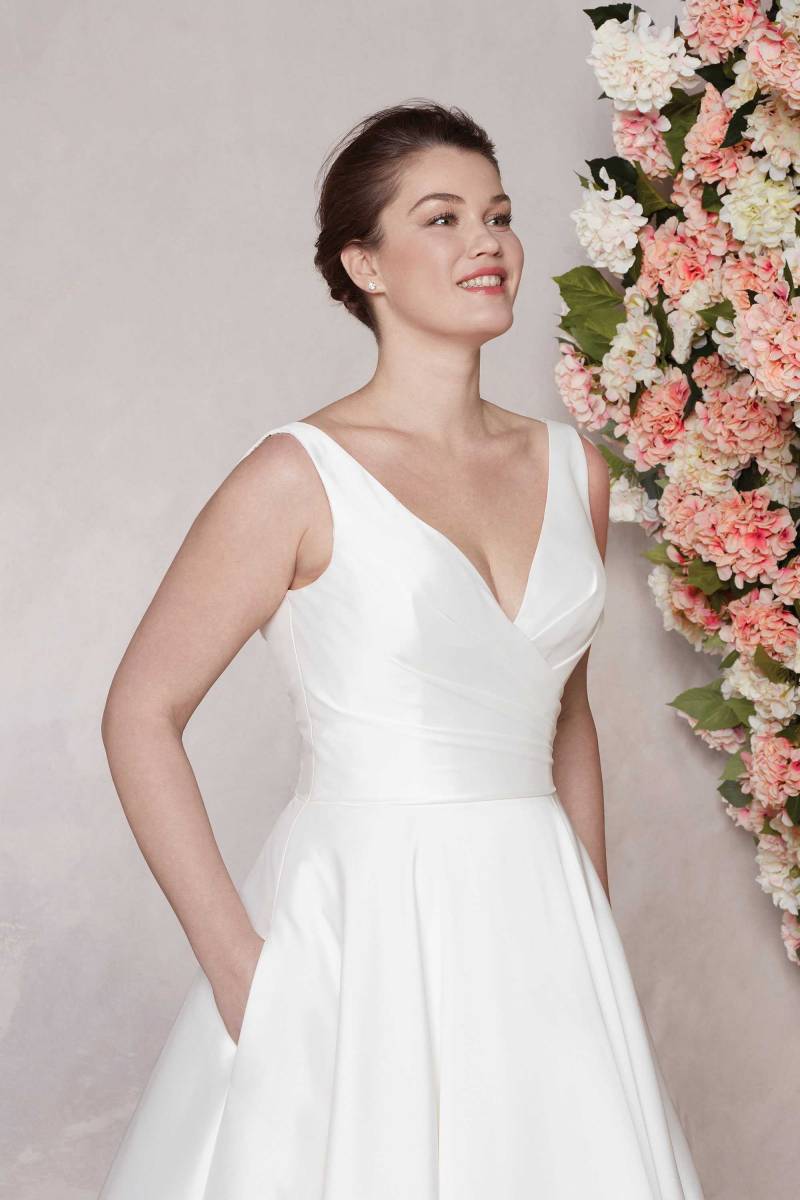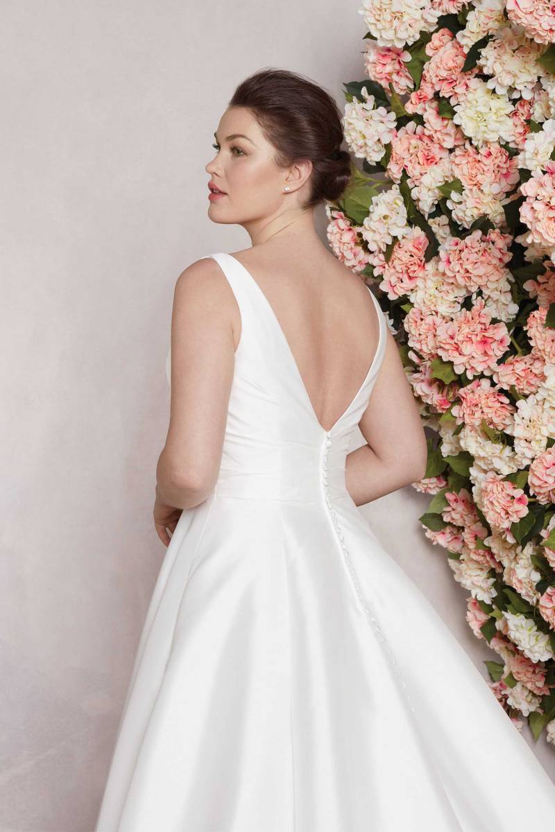 Ne laissez pas passer l’occasion de découvrir la robe de mariée trapèze ligne A en mikado Sincerity 44080.