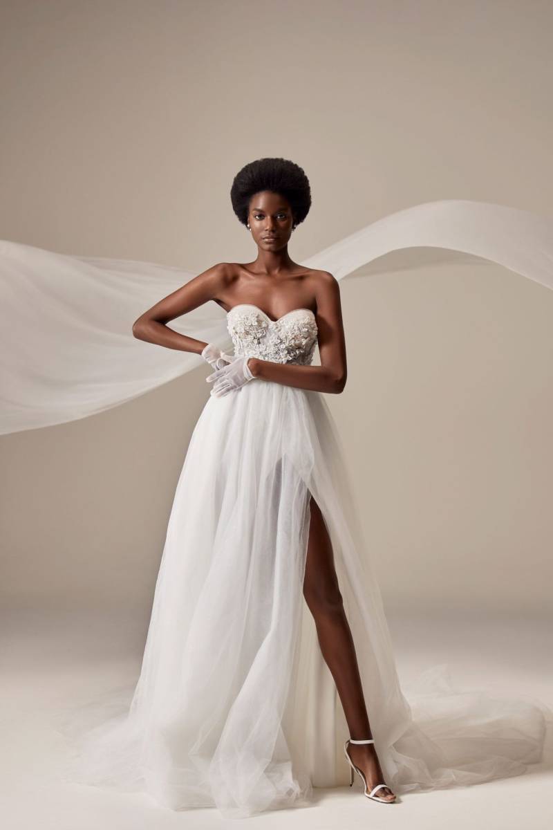 Le bustier est un élément clé de la robe de mariée princesse, offrant une structure élégante et un soutien impeccable. Il met en valeur les épaules et le décolleté, ajoutant une touche de glamour et de sensualitéLes bustiers peuvent avoir différentes formes de décolleté.